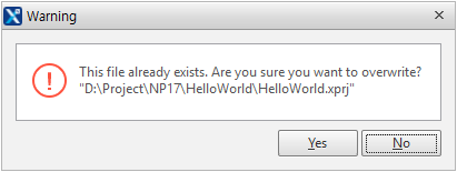 If a project with the same name already exists in the output path, an alert box will appear, asking you whether to overwrite the existing project.
