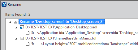 Screen refactoring is conducted when you change the ID of an existing screen. Nexacro Studio will find the applications that adopt the changed screen and then automatically replace the old ID with the new one.