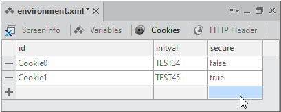 You can add, modify and delete cookies defined in Environment.