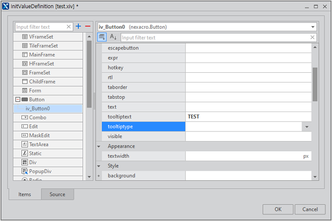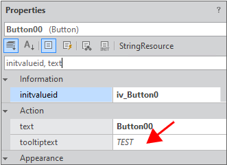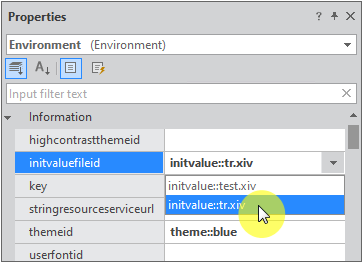 Then, select a component to apply the file to and specify the initvalueid property in the Properties window. After all, the property values saved in the InitValue file will apply to the component, with such values italicized.