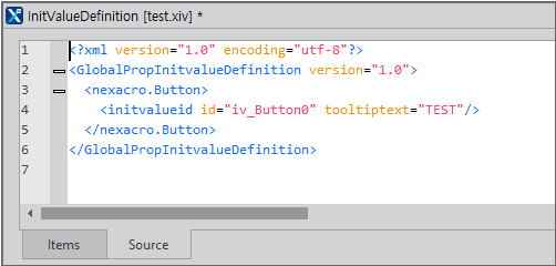 The added initial values will be formatted in XML and saved. You can check the source codes of the InitValue file by clicking the [Source] tab.