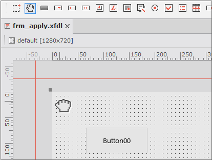 You can move the base coordinate of a Form by selecting the Move icon on the component toolbar. For example, if you want to draw a component outside a Form, you can do so after selecting the Move icon and then moving the base coordinate. As the result of moving a base coordinate, the rulers will display negative areas of their measuring units.
