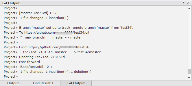 This pane shows the results of Git performing tasks. If an error occurs during operation, the relevant message will be displayed in color.