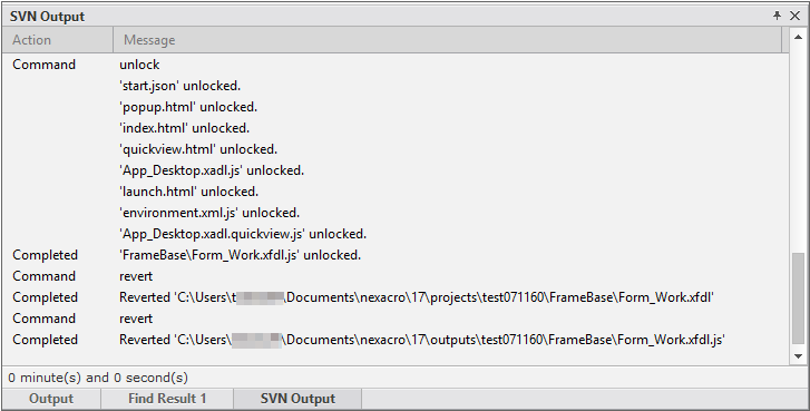 The above functions are also provided by the menu bar of Nexacro Studio. If you want to use Subversion through the menu bar, you need to access the View menu and activate the SVN Output and Check for Modification (Project) panes.