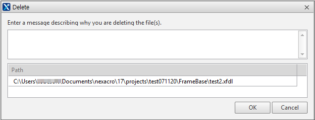 There are two menu items used to delete files: [Edit > Delete] and [Svn > Delete]. The difference is that, if you select [Svn > Delete], you can leave a message about the reason for the deletion.
