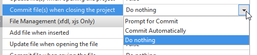 Commit file(s) when closing the project | Commits checked-out files automatically when closing a project |