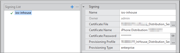 7 | Provisioning Type | Provisioning Profile 파일 유형을 표시합니다. 입력 항목은 아니고 Provisioning Profile 파일 속성에 따라 enterprise , app-store , ad-hoc , development 중 한 가지가 표시됩니다. |