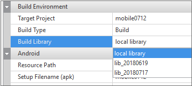 Build Library | 프로젝트 빌드 시 적용할 넥사크로 라이브러리를 선택합니다. |