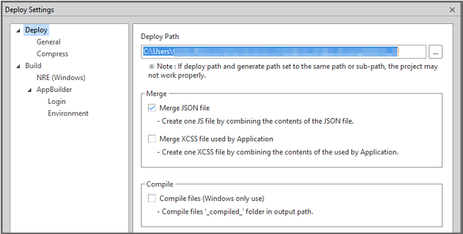 메뉴 [Deploy > Settings] 항목을 클릭하면 Deploy 관련 필요한 값을 설정할 수 있습니다. 메뉴 [Tools > Options] 항목 중 Deploy 환경 설정과 관련된 항목만 모아놓았으며 설정하는 값은 같습니다.