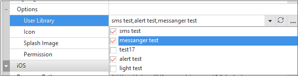 User Library | 프로젝트 빌드 시 적용할 User Library를 선택합니다. Android, iOS만 지원하며 macOS는 지원하지 않습니다. |