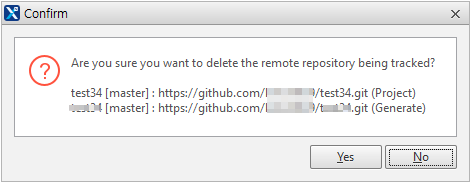 메뉴[Git > Unset Remote Repository]를 선택하면 로컬 저장소에서 추적중인 원격 저장소 정보를 삭제합니다.