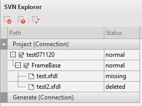 Project 영역의 Git Explorer에서 수행하는 동작은 Menu에서 수행하는 것과 마찬가지로 Generate 경로의 항목과 연계되어(Commit 수행 시 Generate 항목도 Commit 수행) 처리합니다. 하지만 Project 영역과 Generate 영역의 항목들의 상태가 달라서 연계로 처리할 수 없을 경우 Generate 영역의 Explorer에서 Generate 영역의 항목들을 제어할 수 있습니다. Generate Explorer는 Project 영역의 항목들과 연계되어 처리되지 않습니다.