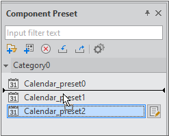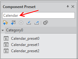 Component Preset 패널에서 프리셋 또는 카테고리를 선택하고 더블클릭하거나 [F2]키를 누르면 편집 모드로 변경되고 이름을 수정할 수 있습니다.