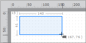 Form 디자인 시 빈 곳에 마우스로 드래그하게 되면 러버밴드(Rubber Band)가 사각형으로 표시되며, 사각형의 시작과 끝 포인터 위치 및 너비와 높이 정보를 표시하여 생성될 컴포넌트의 크기를 조절할 때 사용자가 미리 가늠할 수 있도록 도와줍니다.