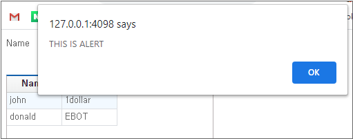 데이터가 조회되고 Alert 대화상자가 표시되는 것을 확인합니다.