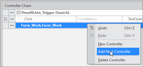 "Add Next Controller" 항목은 Controller Chain Editor에서 Controller를 선택한 상태인 경우 활성화됩니다.