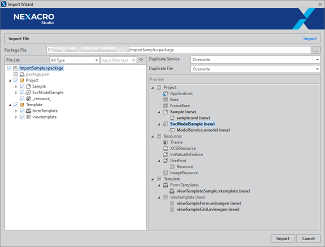 FileList에서 선택할 수 있는 항목을 모두 선택하고 [Import] 버튼을 클릭합니다.