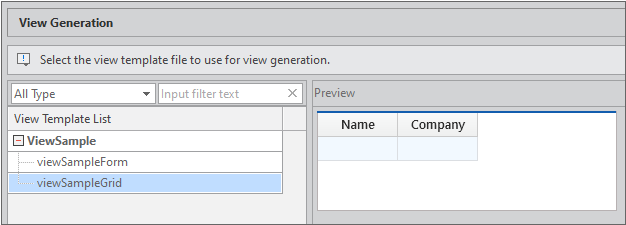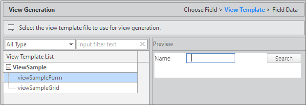 View Template을 선택하면 오른쪽 Preview 영역에 생성될 UI 이미지를 확인할 수 있습니다.
