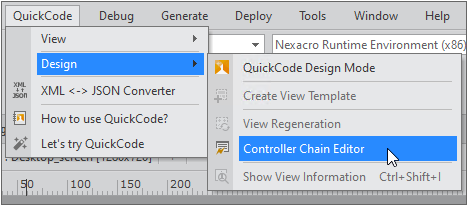 메뉴 [QuickCode > Design > Controller Chain Editor] 항목을 선택합니다.