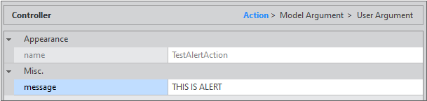 QuickCode 패널에서 Action 탭을 선택하고 TestAlertAction 항목을 선택합니다.