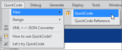 QuickCode 패널이 표시되지 않은 상태라면 메뉴 [QuickCode > View > QuickCode]를 선택하고 QuickCode 패널을 표시합니다.