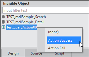 Invisible Object 영역에서 TestQueryAction00 항목을 더블클릭합니다.