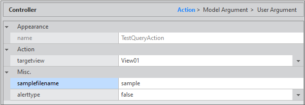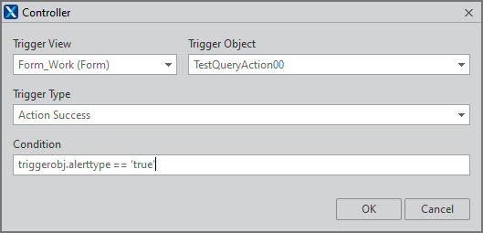 condition 속성은 Action이 동작하는 조건인데, 데이터 조회 Action에서 alerttype 속성값이 true인 경우에만 동작하도록 조건을 설정합니다.