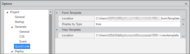 ViewSet 템플릿 파일과 마찬가지로 저장되는 기본 폴더는 메뉴 [Tools > Options > QuickCode > View Template]에서도 확인할 수 있습니다. View Template 탭에서 Location 링크 위에 있는 Setting 버튼을 클릭하면 해당 옵션으로 바로 이동합니다.