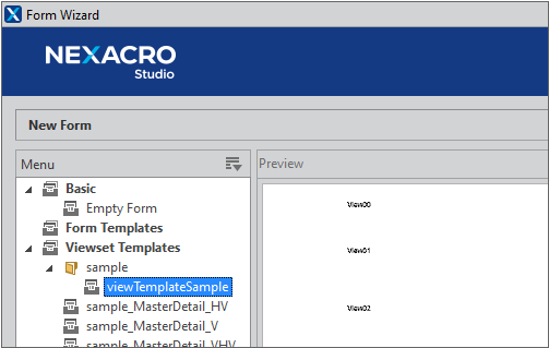 [Next] 버튼을 클릭하고 View Template List에서 viewSampleForm을 선택합니다.