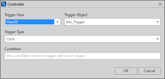 Controller 정보를 확인하고 condition 속성값을 입력한 후 [OK] 버튼을 클릭합니다.