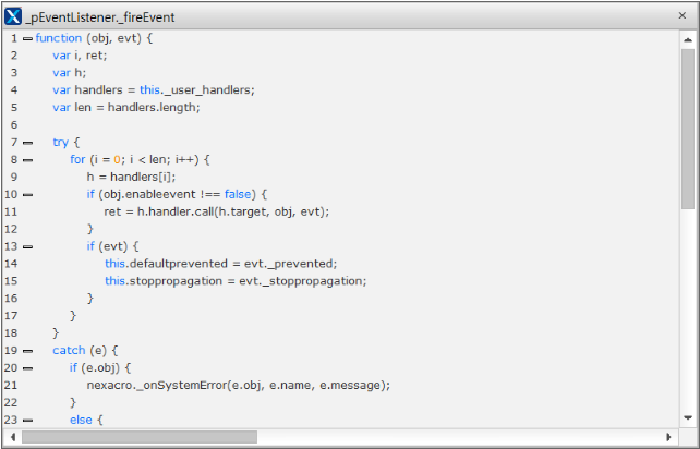 넥사크로 스튜디오에서 제공하는 디버깅 기능은 NRE에서 실행했을 때만 동작합니다. 실행환경이 웹브라우저인 경우에는 웹브라우저에서 제공하는 디버깅 기능을 사용해야 합니다.