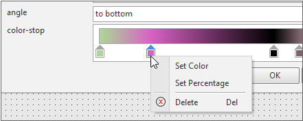 [color-stop] 항목의 각 색상을 마우스 오른쪽 버튼으로 클릭하면 값을 편집하거나 해당 색상 항목을 삭제할 수 있습니다.