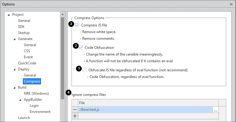 배포할 프로젝트 파일의 스크립트를 압축, 난독화하는 옵션을 설정합니다.