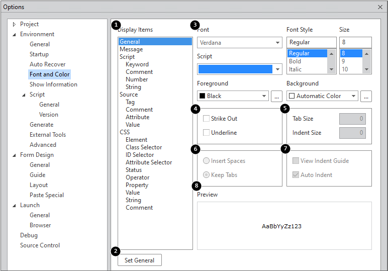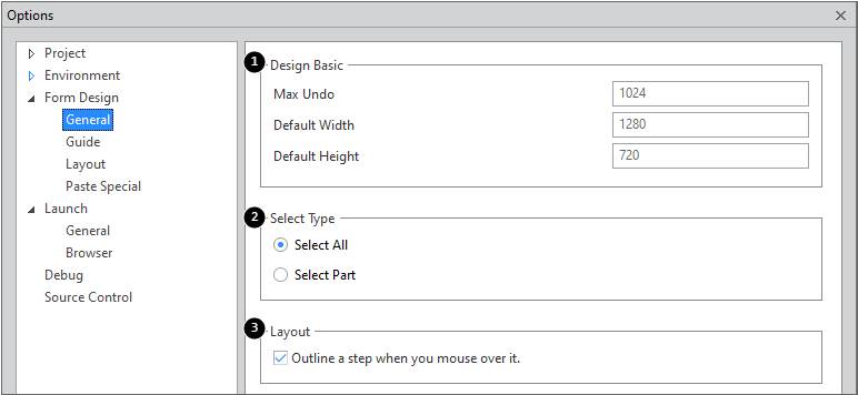 넥사크로 스튜디오의 Design Window와 관련된 Option을 설정합니다.