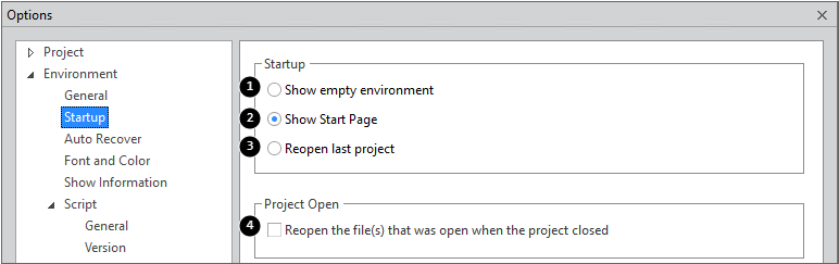 프로젝트 로딩 시 처리되는 항목을 설정합니다.