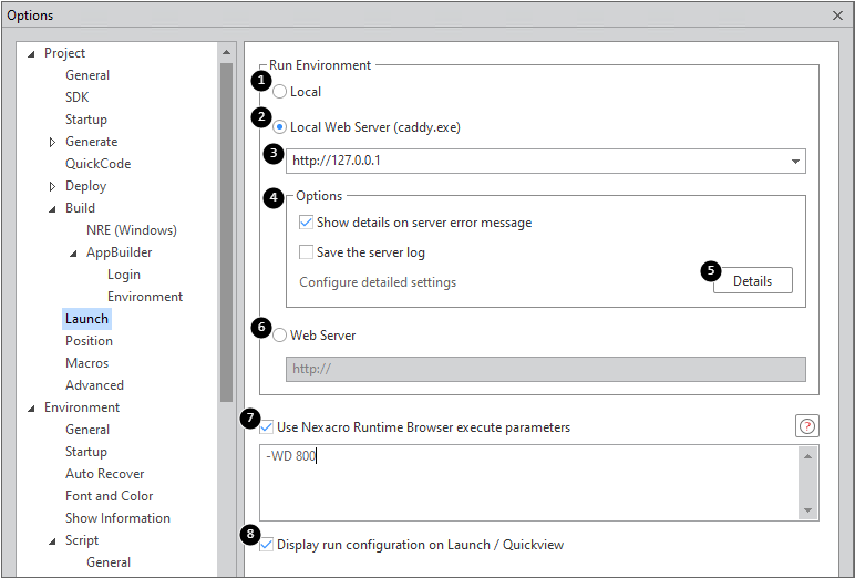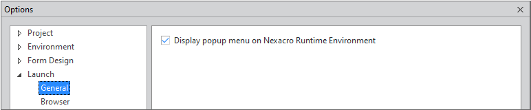 넥사크로 스튜디오에서 작업 중인 Project를 Launch할 때 사용되는 Option입니다.