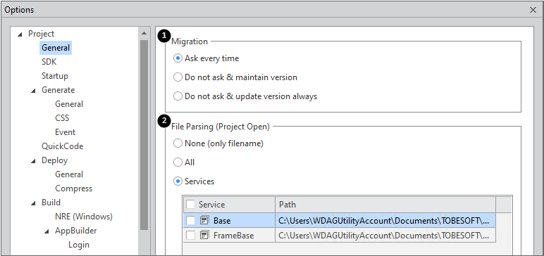프로젝트 내 사용되는 파일의 버전이 넥사크로 스튜디오에서 지원하는 파일의 버전보다 낮으면 마이그레이션 여부를 설정합니다.