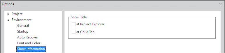Project 관련 옵션은 프로젝트가 열린 상태에서만 보이며 프로젝트마다 설정된 값이 별도로 관리됩니다.
