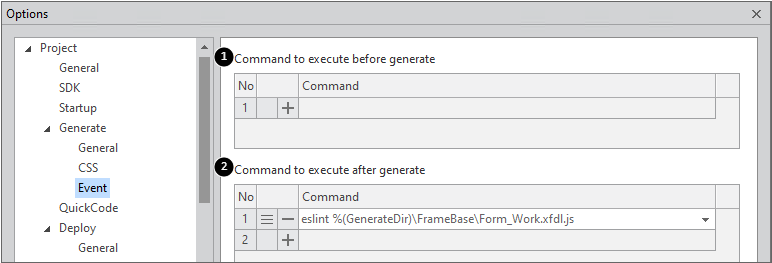 Generate 실행하기 전 Command 항목에 지정된 명령을 수행합니다.