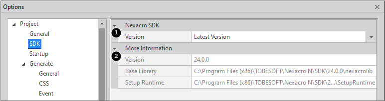- Version: 설치된 SDK 목록 중 선택합니다.