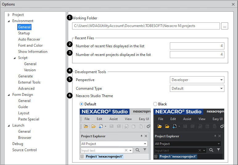 넥사크로 스튜디오의 메뉴 [Tools > Option]를 선택하여 넥사크로 스튜디오의 전체적인 개발 환경을 설정할 수 있습니다.