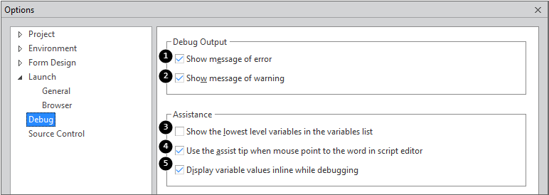 넥사크로 스튜디오의 Debugging과 관련된 Option을 설정합니다.