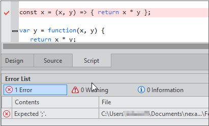 참고: 반대 방향 기능(파일 편집창 탭에서 Script 선택 시 Project Explorer 창에 해당 Script 위치 표시)은 제공하지 않습니다.