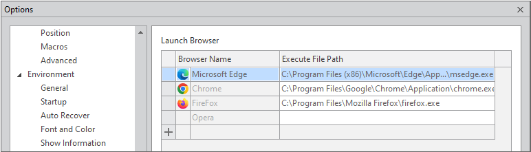 Launch, Quick View 사용 시 연결할 웹브라우저를 지정합니다.