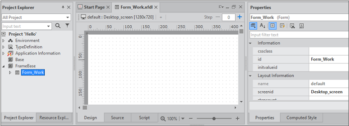 Project Explorerの下部に生成されたForm_Work項目をダブルクリックすると、Form Designウィンドウが有効になります。