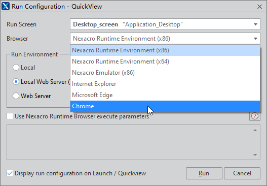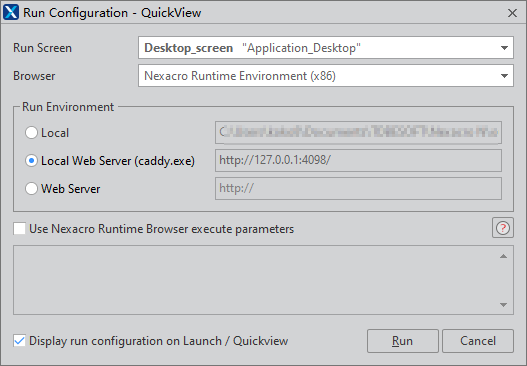 修正されたNexacroアプリを確認したい場合は、Quick Viewを使用します。 Quick Viewを実行するメニューは以下の通りです。