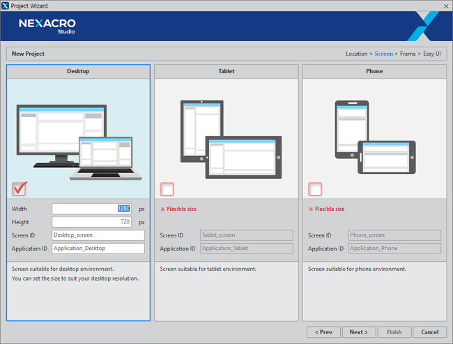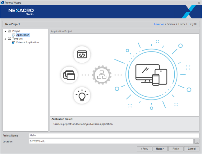 Nexacroアプリを作成するためには、先にプロジェクトを作成する必要があります。すべてのNexacroアプリは、プロジェクトで指定された属性によってユーザーの画面に表示され、動作することになります。