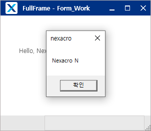 「Hello, Nexacro N」と表示されているテキスト領域をクリックすると、下記のような警告ダイアログが表示されます。