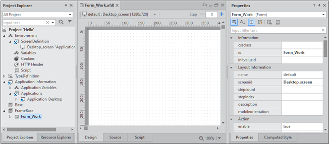 2 Form Design | nexacro platformアプリ画面のデザイン、スクリプト編集作業が行われるスペースです。 |