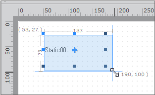 コンポーネントをForm Designウィンドウに配置したときにサイズを変更する場合は、「Objects」ツールバーでコンポーネントをマウスで選択して、コンポーネントを描画する位置でマウス左ボタンを押したままマウスをドラッグすると、任意のサイズにコンポーネントを配置することができます。コンポーネントを配置した後も、マウスでコンポーネントを選択し、コンポーネントのサイズを調整することができます。